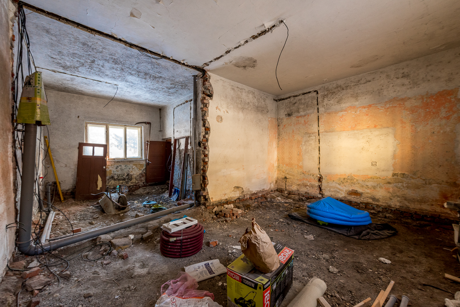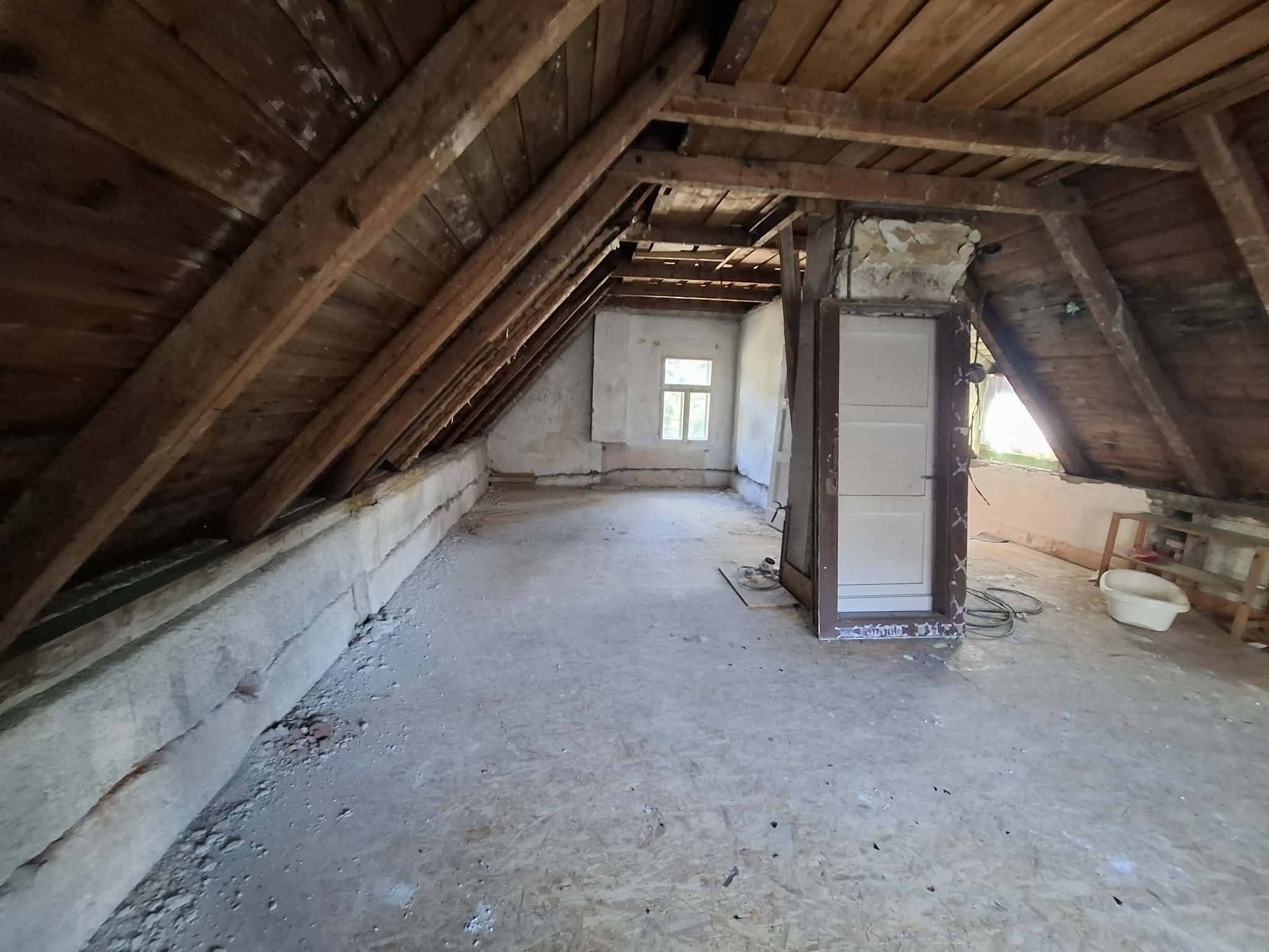 Tento dům je v dobrém stavebním stavu a co je nejlepší – s náročnou fází rekonstrukce se již začalo! Nemusíte se obávat demoličních prací, ty jsou již za vámi. Původní podlahy i nenosné příčky byly odstraněny, a co je klíčové pro dlouhodobou pohodu, celý dům prošel důkladnou izolací obvodového zdiva injektážemi. Již se rýsuje budoucí koupelna a samostatná toaleta v přízemí a částečně jsou připraveny i rozvody elektřiny a vody, což vám ušetří spoustu času a úsilí.