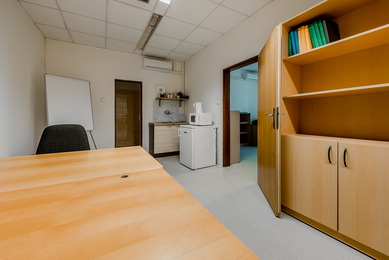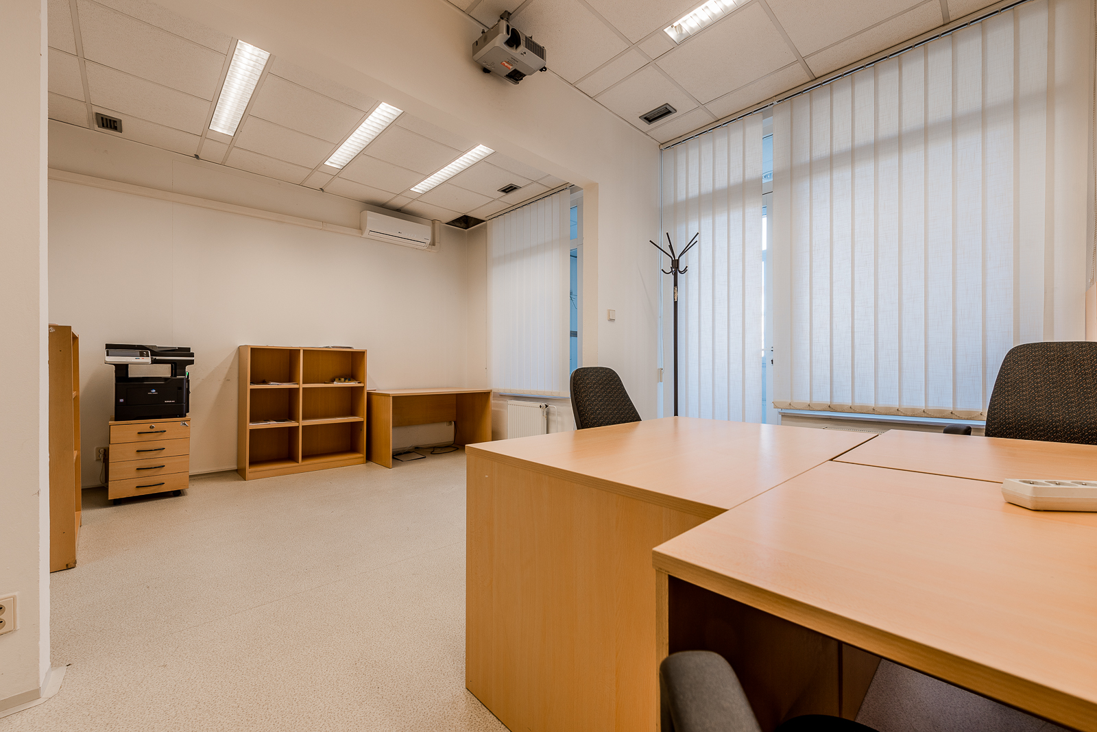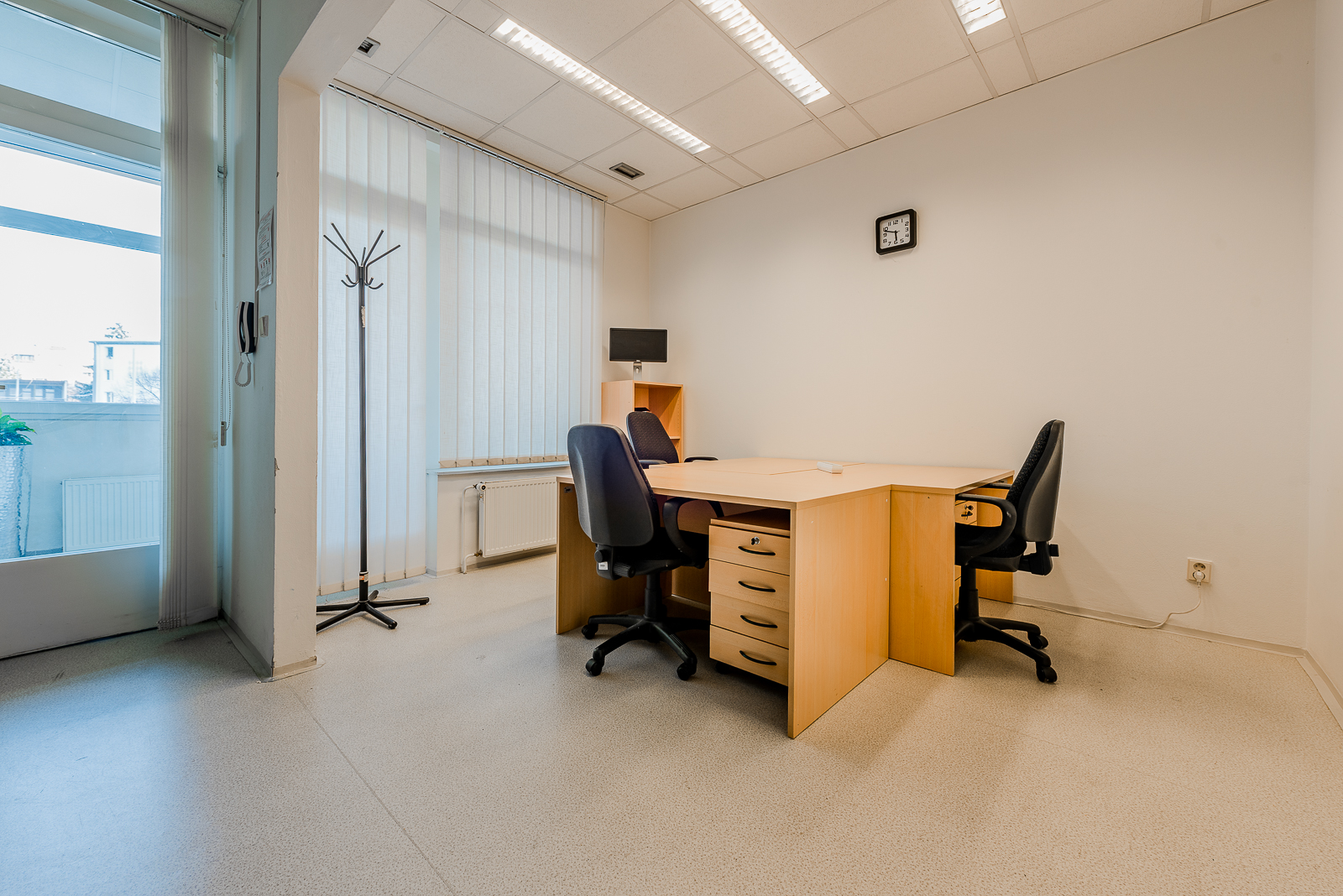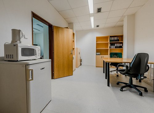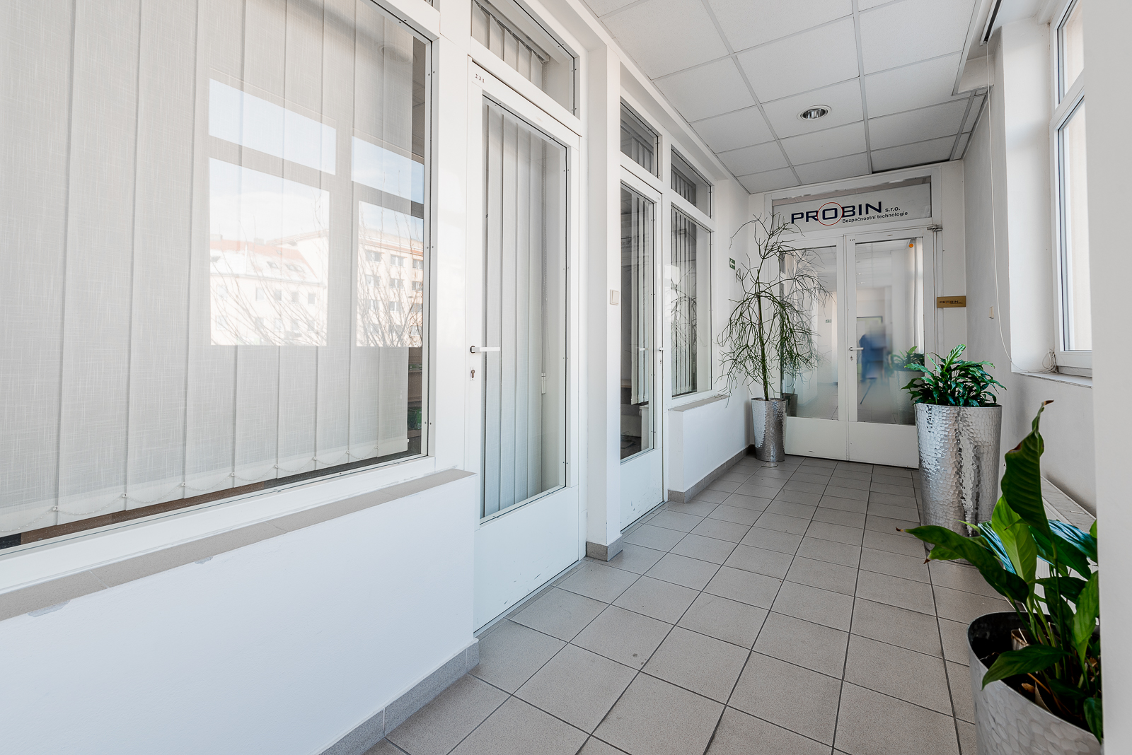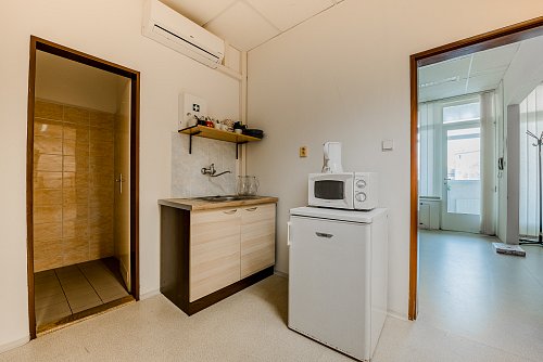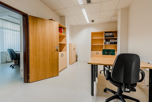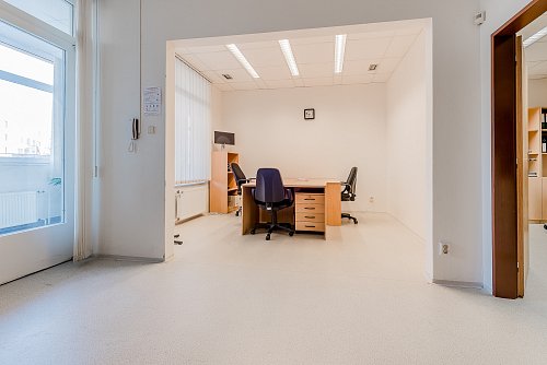 Kanceláře se nachází ve druhém nadzemním podlaží udržované cihlové budovy, která si zachovává svůj historický šarm. Prostory prošly pečlivou rekonstrukcí, jsou ve skvělém stavu a připraveny k okamžitému užívání. Na podlahách v hlavních kancelářích naleznete praktické a odolné PVC, zatímco chodba a sociální zařízení jsou pokryty moderní dlažbou, což podtrhuje celkový čistý a profesionální dojem.